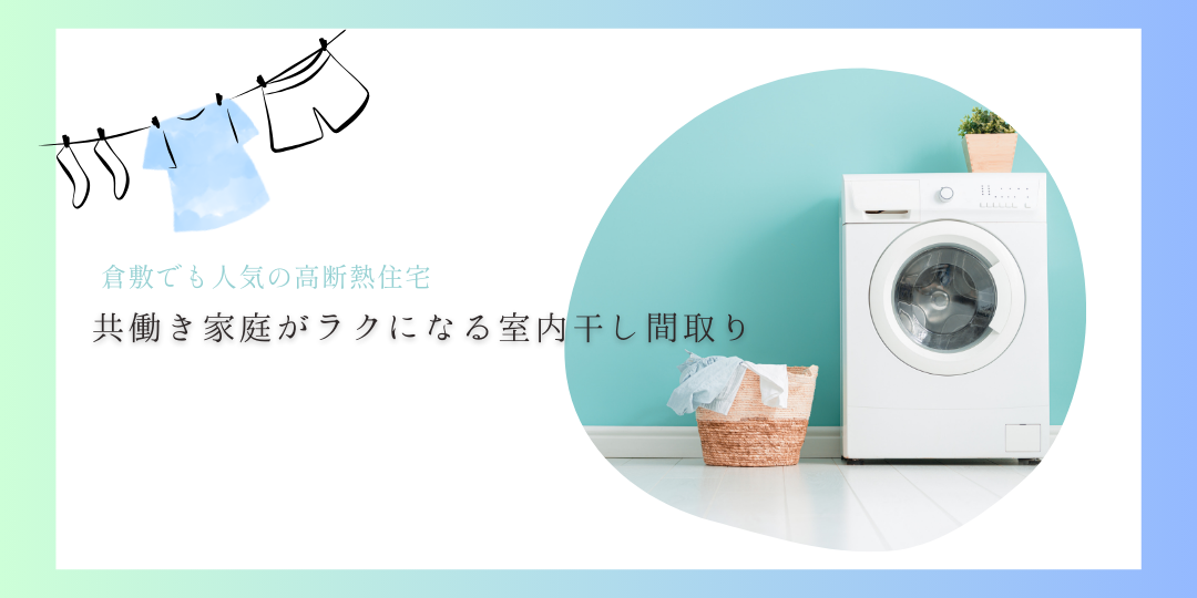 共働き家庭が多い倉敷エリアでは、天候や花粉を気にせず洗濯できる「室内干しスペース」が人気を集めています。